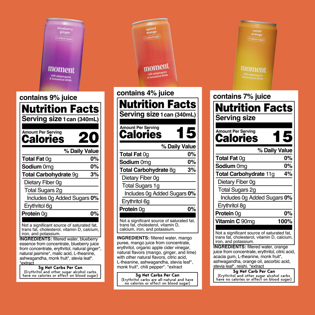 - Natural botanicals such as ginger, hibiscus, rhubarb, and jasmine